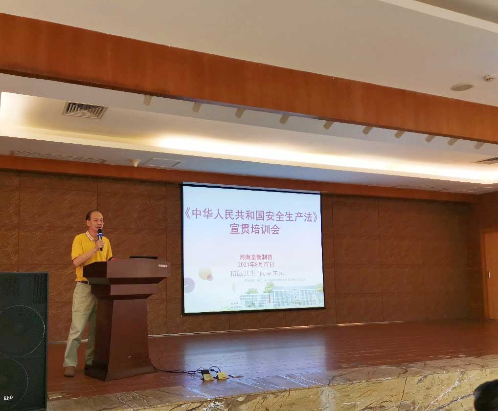 海南皇隆制藥股份有限公司高度重視此次新安全生產(chǎn)法的頒布實(shí)施,為了提高全體員工對(duì)新《安全生產(chǎn)法》的認(rèn)識(shí),全面加強(qiáng)安全生產(chǎn)法治觀念,提升企業(yè)安全管理水平,2021年8月27日組織開(kāi)展新《安全生產(chǎn)法》宣貫培訓(xùn)會(huì)議,公司安委會(huì)主任陳益智、副主任史江永、何晶及陳國(guó)華、馬和東、葉華等16名安委會(huì)成員、公司專(zhuān)職(兼職)安全員、各部門(mén)領(lǐng)導(dǎo)及骨干成員等參加了此次培訓(xùn)