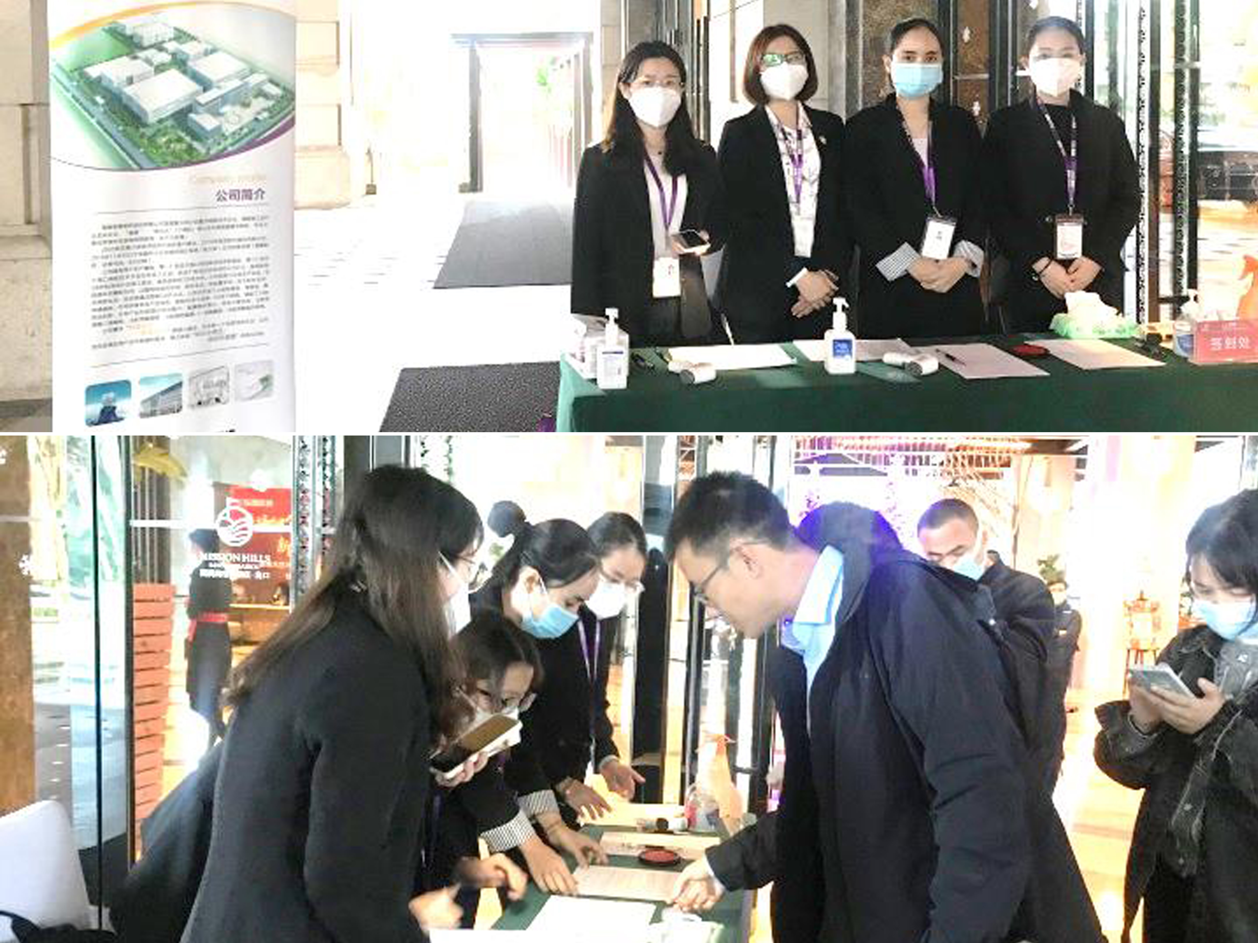 乘坐公司大巴車(chē)及自駕前往的企業(yè)高管們經(jīng)過(guò)嚴(yán)格的防疫審查和登記,簽到后乘坐大巴車(chē)前往皇隆制藥。