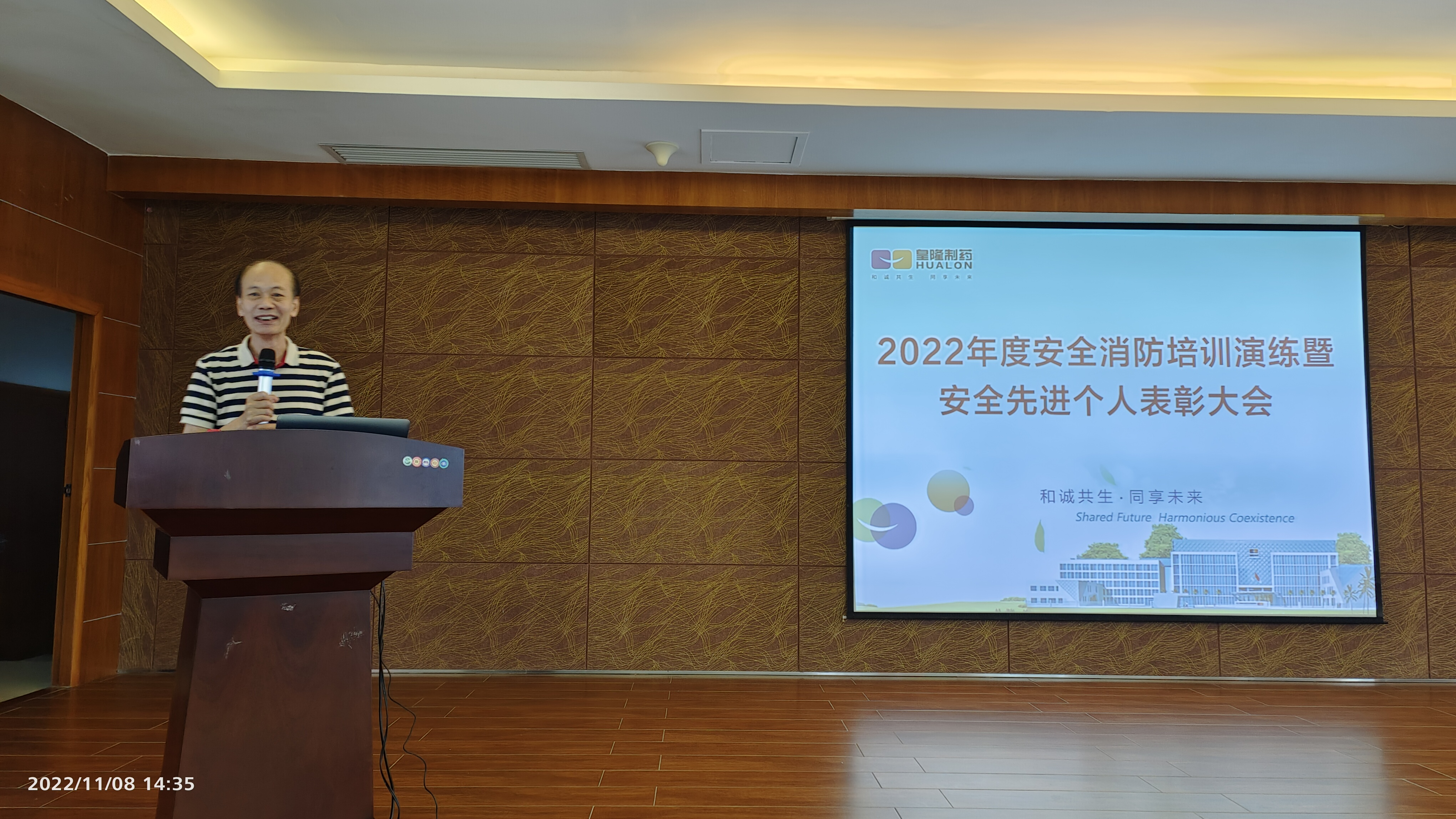 ?為提高員工安全生產消防意識和實戰(zhàn)操作技能,進一步加強員工應對突發(fā)事件的應急處置能力。海南皇隆制藥股份有限公司于11月8日,第31個“全國消防宣傳日”前夕,組織召開了2022年度安全消防培訓演練暨安全先進個人表彰大會。公司安委會領導成員史江永、何晶、陳國華,專兼職安全員,各部門/車間部門管理人員,子公司及在建項目安全管理骨干等參加本次會議。