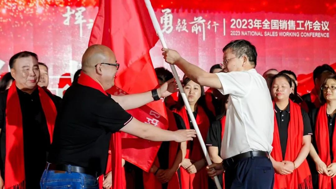 公司根據(jù)產(chǎn)品結(jié)構(gòu)和市場(chǎng)實(shí)際,重新調(diào)整了營(yíng)銷總監(jiān)分工,成立了北部、中部、南部三個(gè)戰(zhàn)區(qū),使管理垂直、效率更高、責(zé)任更明。董事長(zhǎng)、總經(jīng)理陳益智為三個(gè)戰(zhàn)區(qū)授旗,大家紛紛表示,克服困難,勇毅前行,堅(jiān)決完成公司制定的營(yíng)銷目標(biāo)。