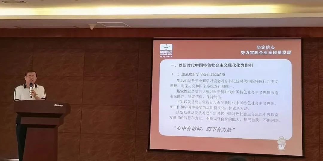 6月30日,海南皇隆制藥黨支部書記陳益智組織全體黨員、領(lǐng)導(dǎo)干部和員工400余人在公司大會議室開展主題教育學(xué)習(xí),他結(jié)合習(xí)近平新時代中國特色社會主義思想闡述了如何發(fā)揮政治引領(lǐng)和黨員先鋒模范作用,結(jié)合黨課教育客觀務(wù)實(shí)分析了公司當(dāng)前在行業(yè)中面臨的挑戰(zhàn)和機(jī)遇,全體與會人員深受教育和鼓舞,均表示爭做“兩個確立”的堅(jiān)定擁護(hù)者、“兩個維護(hù)”的忠實(shí)踐行者,創(chuàng)優(yōu)爭先、發(fā)揮先鋒模范作用。