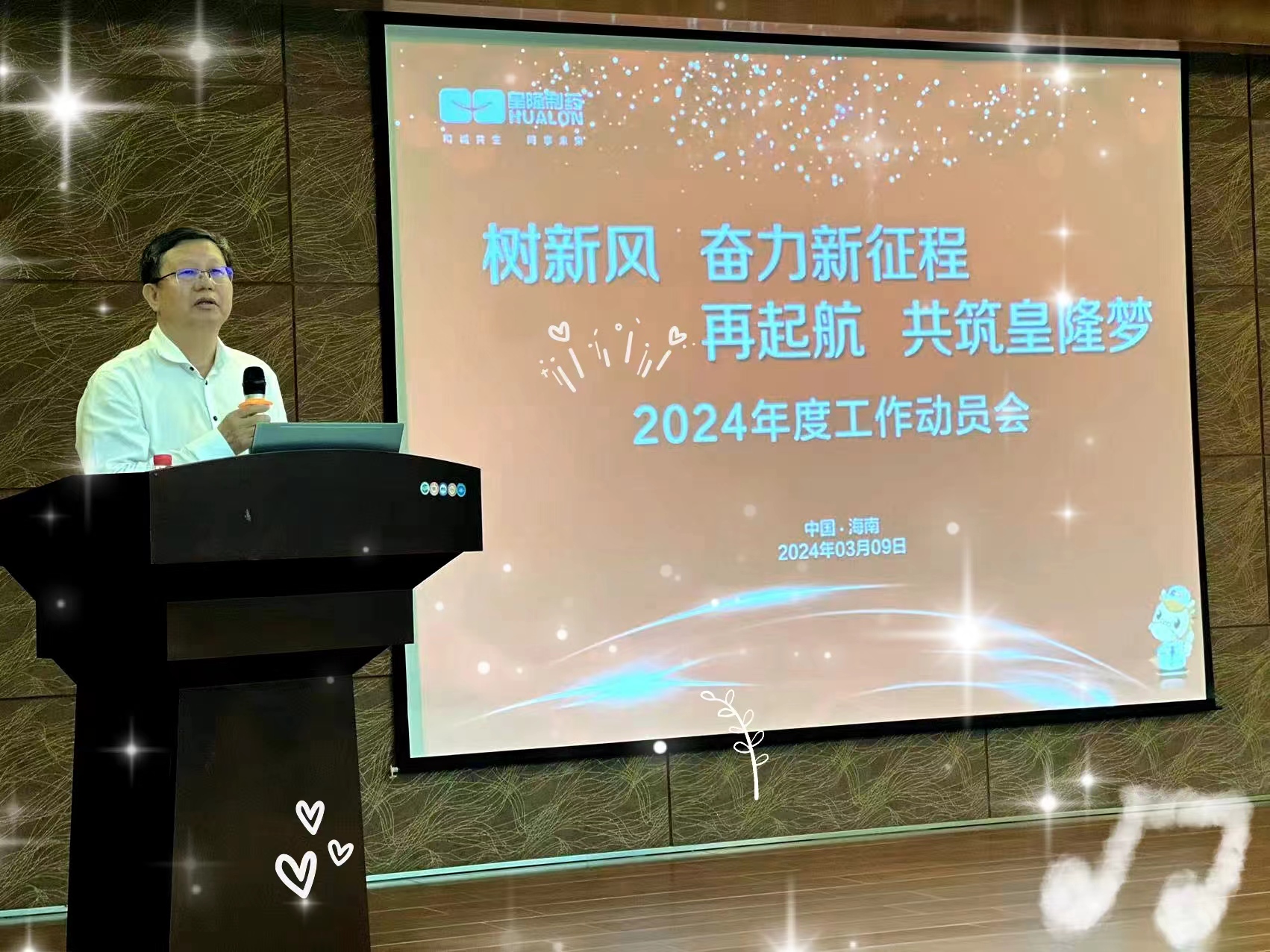 公司董事長、總經理陳益智做總結。他首先感謝過去一年全體員工所做的努力,對部門管理人員的述職表現(xiàn)和高管的培訓給予了充分肯定。然后陳總開始就2024年進行工作總動員。根據(jù)會議主題“樹新風,奮力新征程;再起航,共筑皇隆夢”!董事長進行重點深入的詮釋,就此引入皇隆的企業(yè)文化、闡述皇隆文化的內涵,要求大家大力弘揚皇隆優(yōu)秀文化,擦亮皇隆制藥品牌名片,增強皇隆文化自信!同時對2024年如何樹立榜樣、弘揚精神,激發(fā)團隊活力做出了動員。