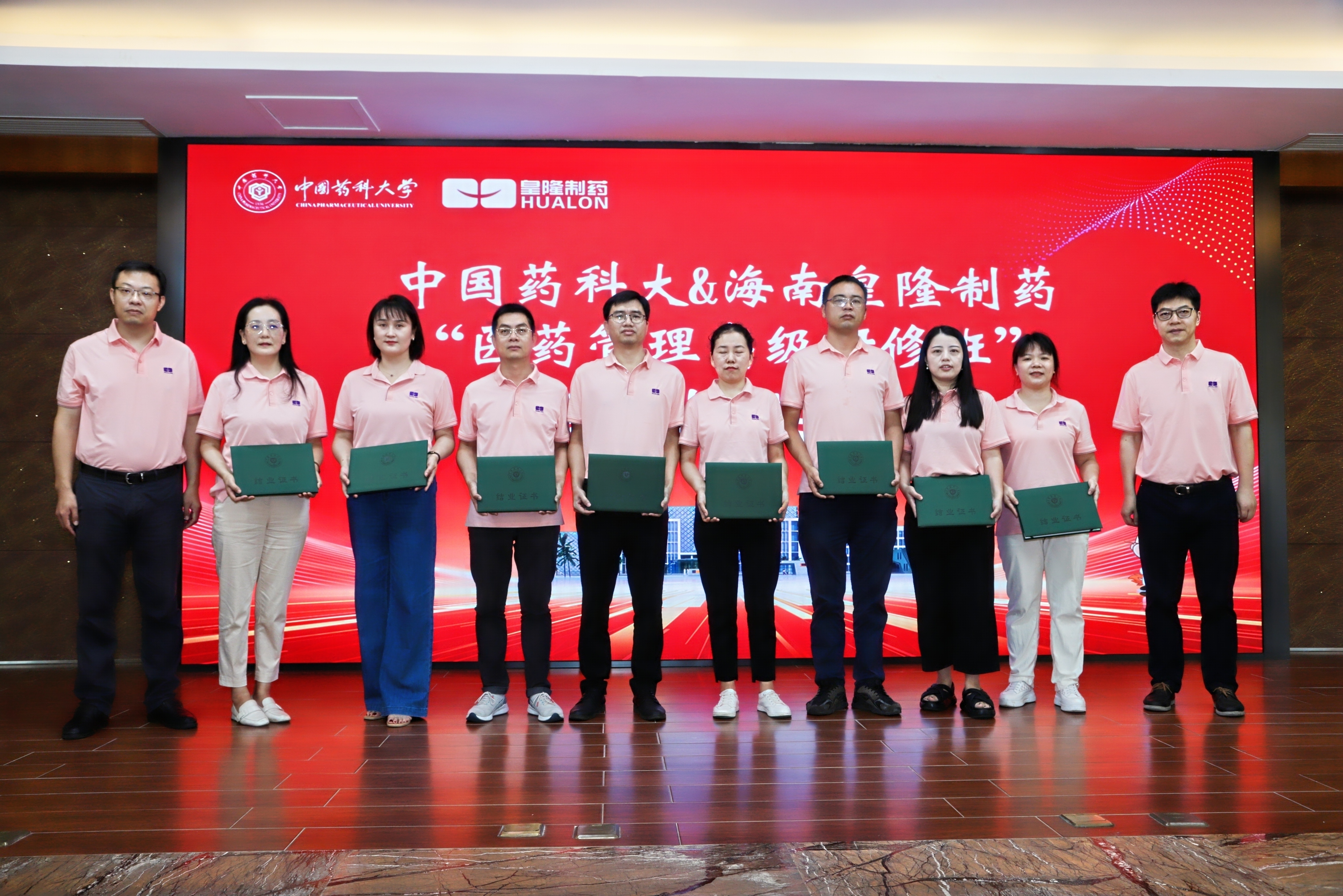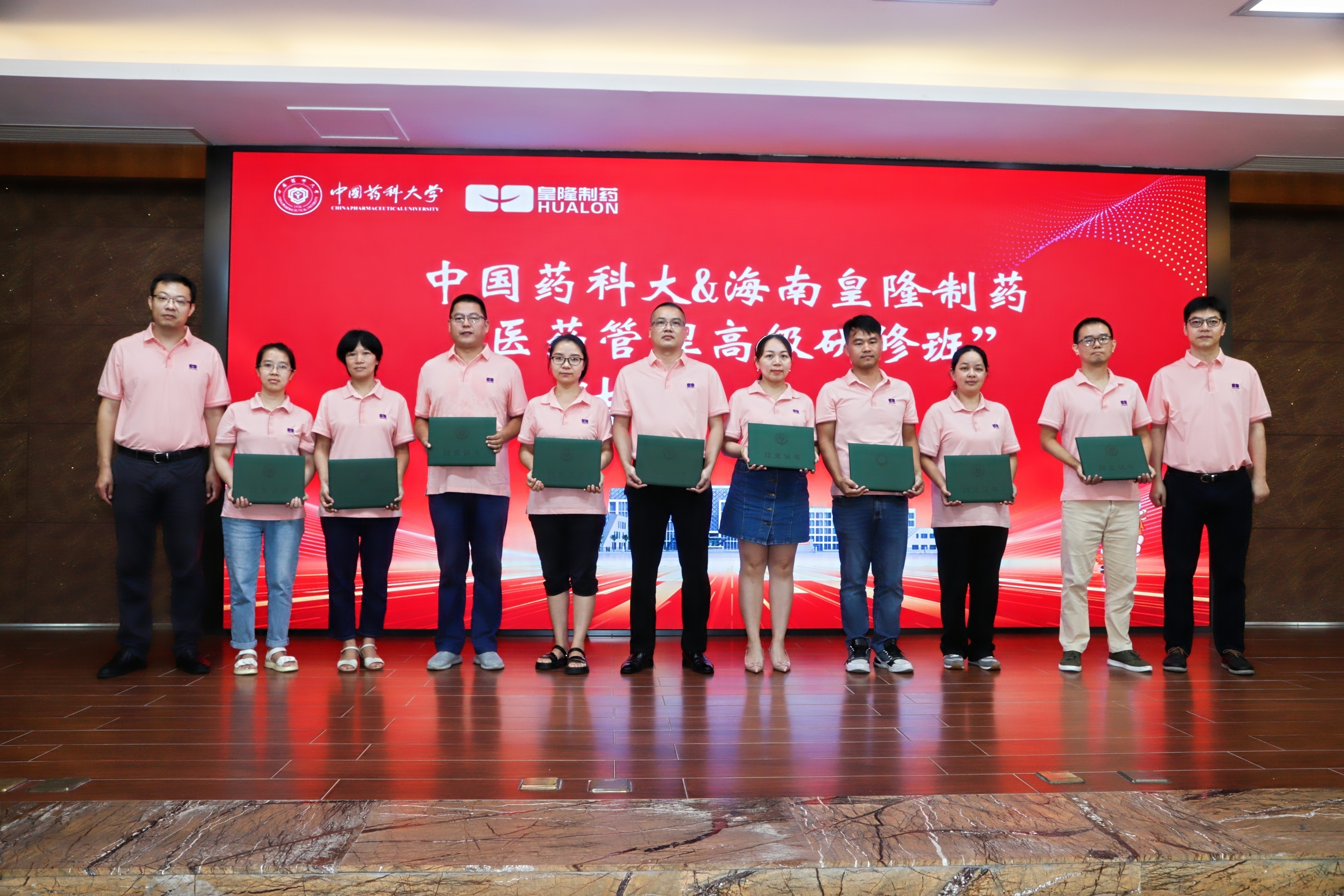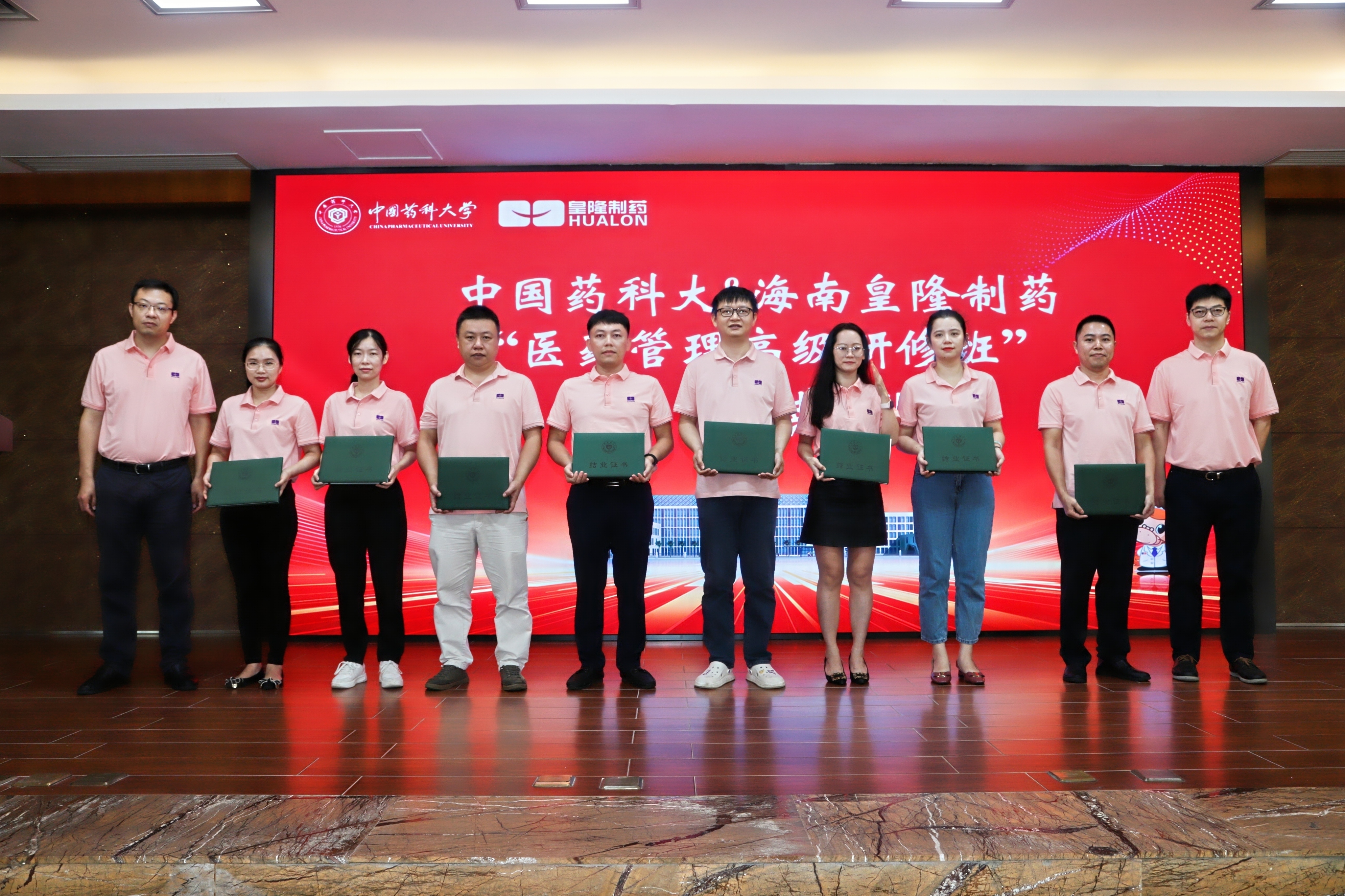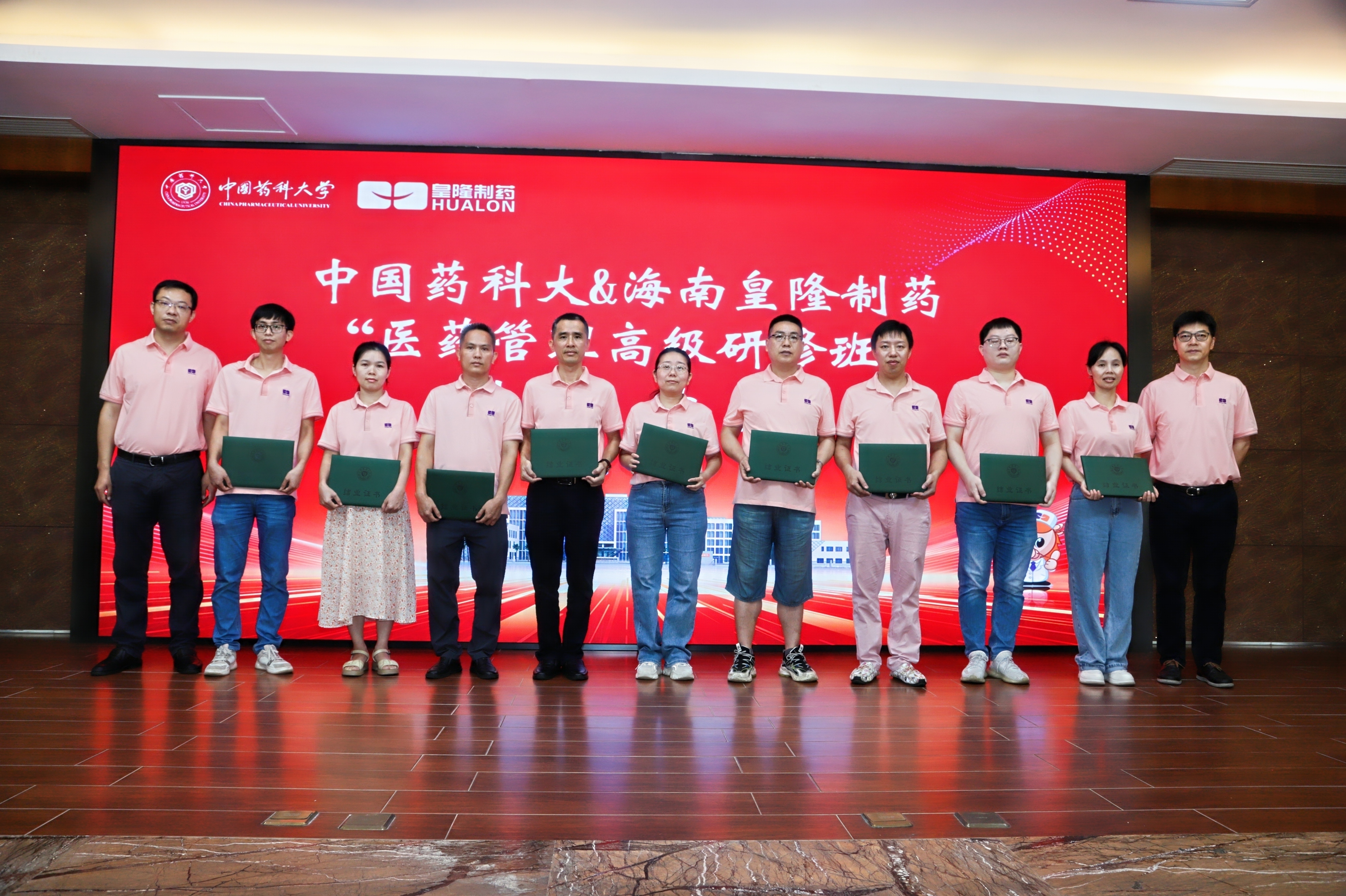 7月23日上午,中國(guó)藥科大學(xué)“專(zhuān)業(yè)學(xué)位研究生院級(jí)實(shí)踐基地”揭牌儀式暨中國(guó)藥科大學(xué)&海南皇隆制藥“醫(yī)藥管理高級(jí)研修班”結(jié)業(yè)典禮在海南皇隆制藥股份有限公司成功舉行。??趪?guó)家高新技術(shù)產(chǎn)業(yè)開(kāi)發(fā)區(qū)工委副書(shū)記、管委會(huì)主任李杉、中國(guó)藥科大學(xué)研究生院副院長(zhǎng)李飛、中國(guó)藥科大學(xué)國(guó)際醫(yī)藥商學(xué)會(huì)副院長(zhǎng)徐偉、海南皇隆制藥股份有限公司董事長(zhǎng)陳益智、公司管理層以及54名學(xué)員共同參加了本次儀式。
