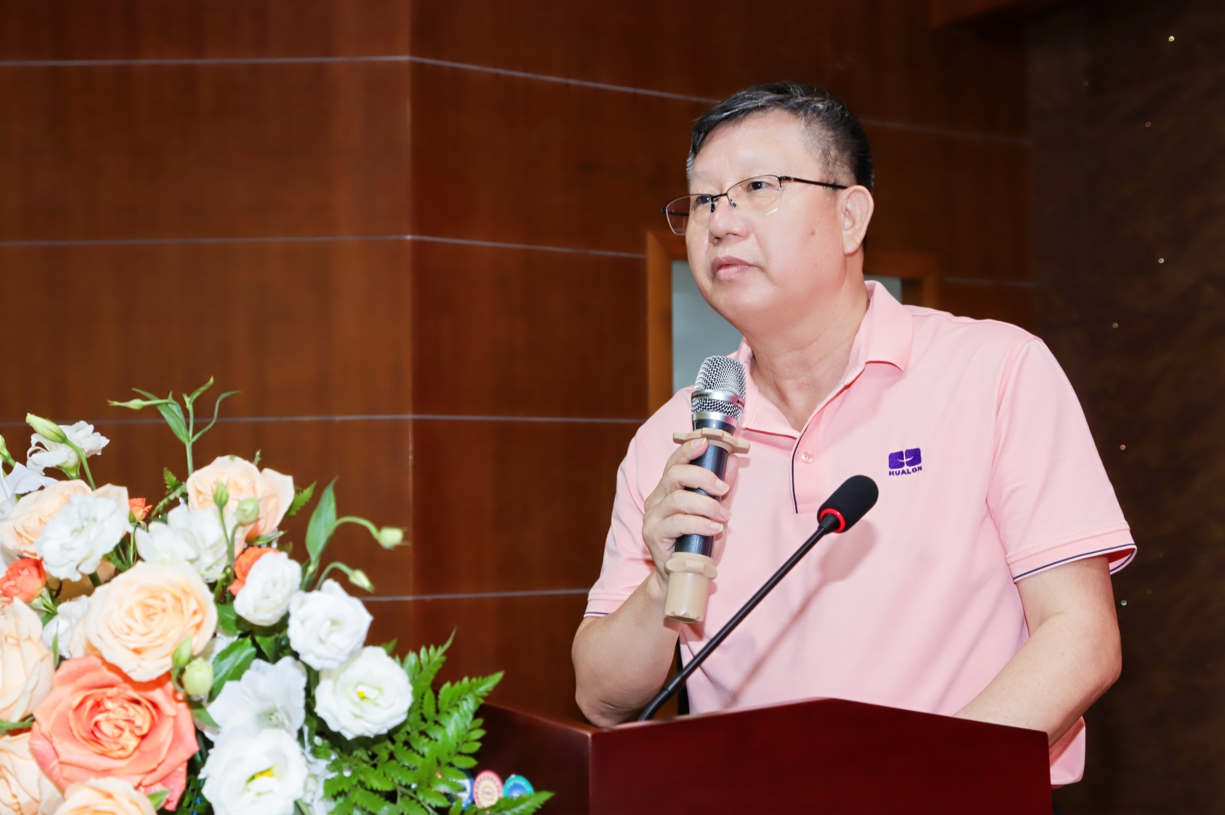 海南皇隆制藥股份有限公司董事長(zhǎng)陳益智發(fā)表致辭。他向遠(yuǎn)道而來(lái)的中國(guó)藥科大學(xué)的學(xué)院領(lǐng)導(dǎo)表達(dá)衷心感謝,向完成“醫(yī)藥管理高級(jí)研修班”學(xué)業(yè)的學(xué)員表示熱烈的祝賀。他表示,2017年,皇隆制藥攜手中國(guó)藥科大學(xué)共同開(kāi)設(shè)的“醫(yī)藥管理高級(jí)研修班”,旨在培養(yǎng)與時(shí)俱進(jìn)符合現(xiàn)代醫(yī)藥產(chǎn)業(yè)發(fā)展需要的優(yōu)秀人才。盡管在學(xué)習(xí)期間遭遇了疫情的嚴(yán)峻挑戰(zhàn)和各種考驗(yàn),但大家學(xué)習(xí)的步伐并未停止,因此才有了今天大家在皇隆制藥歡聚的時(shí)刻,一起共慶“醫(yī)藥管理高級(jí)研修班”圓滿結(jié)業(yè),一起見(jiàn)證“專(zhuān)業(yè)學(xué)位研究生院級(jí)實(shí)踐基地”揭牌?;事≈扑?ldquo;和誠(chéng)共生、同享未來(lái)”的核心理念與中國(guó)藥大“精業(yè)濟(jì)群”的校訓(xùn)文化精神相同、價(jià)值觀念契合,“專(zhuān)業(yè)學(xué)位研究生院級(jí)實(shí)踐基地”,是校企雙方共同打造的專(zhuān)業(yè)平臺(tái),是為了讓更多的學(xué)員在這個(gè)平臺(tái)上學(xué)有所成、學(xué)以致用,為醫(yī)藥行業(yè)、為人類(lèi)的健康事業(yè)做出更大的貢獻(xiàn)。
