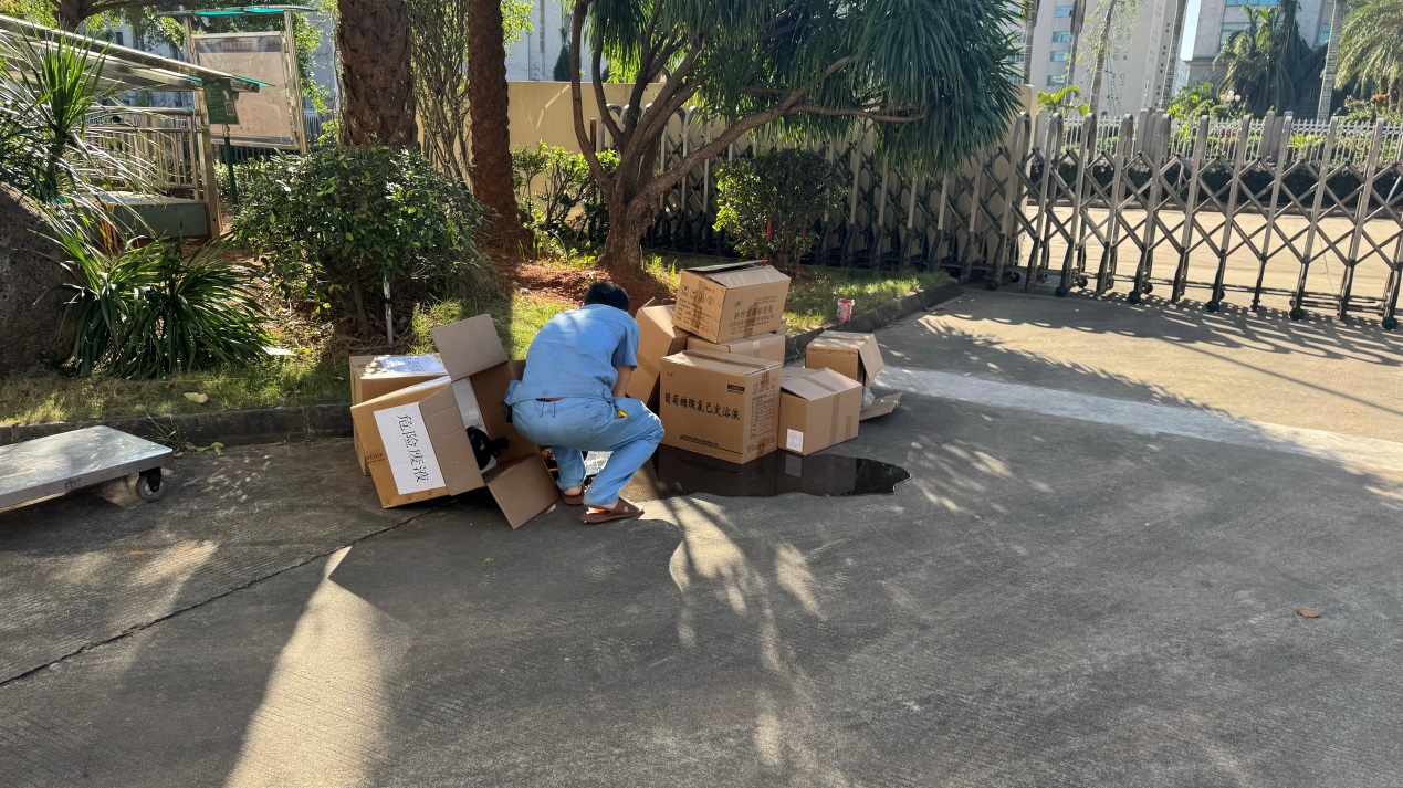 | 運輸中,實驗室危險廢液不慎被碰倒 |