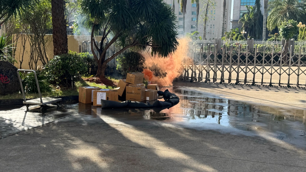 下午15:00點,全體人員來到戶外進(jìn)行了2024年度安全消防及突發(fā)環(huán)境事件應(yīng)急演練。本次演練腳本共有兩個模擬場景,分別是突發(fā)環(huán)境事件應(yīng)急演練、消防安全應(yīng)急演練。