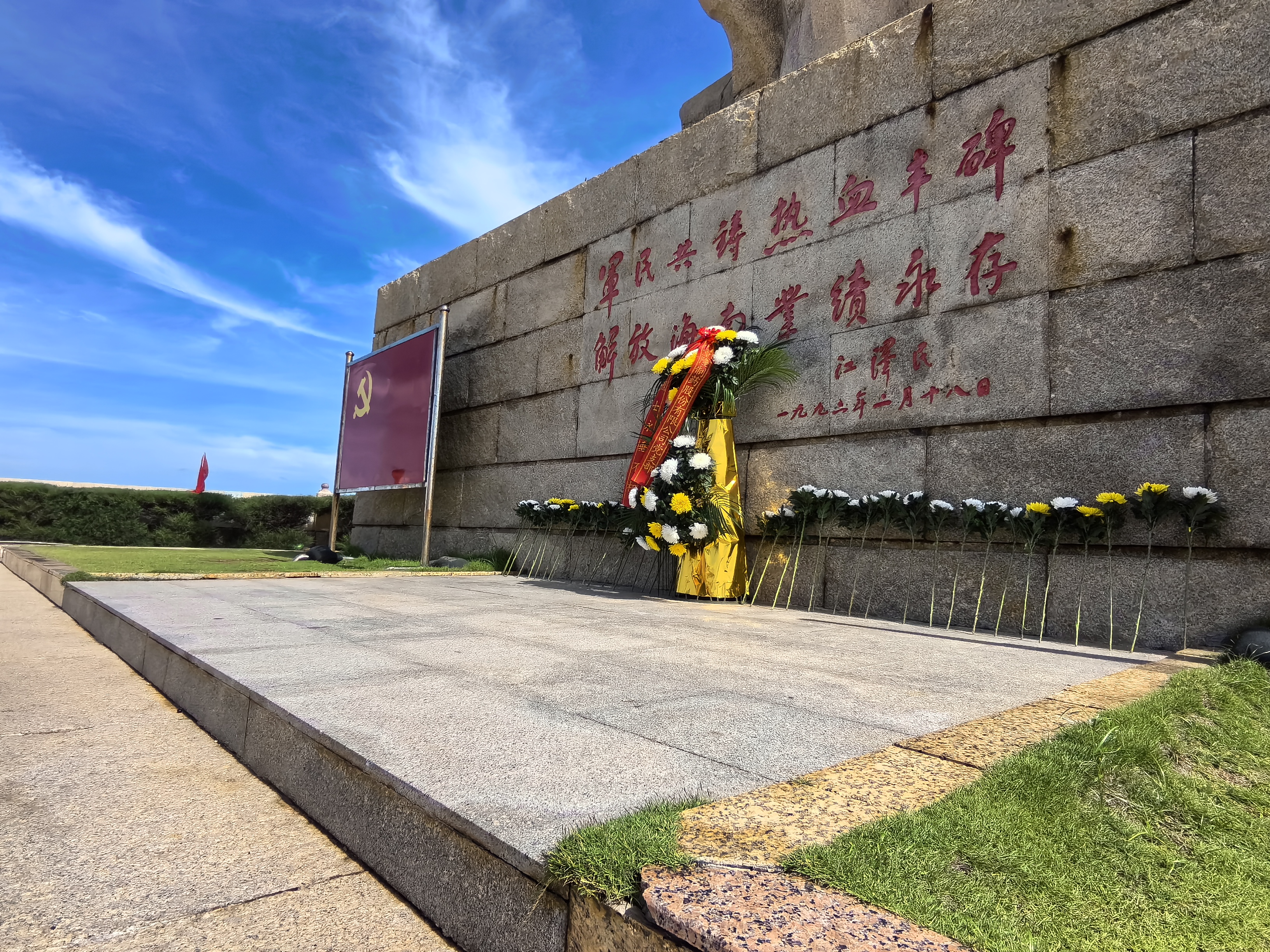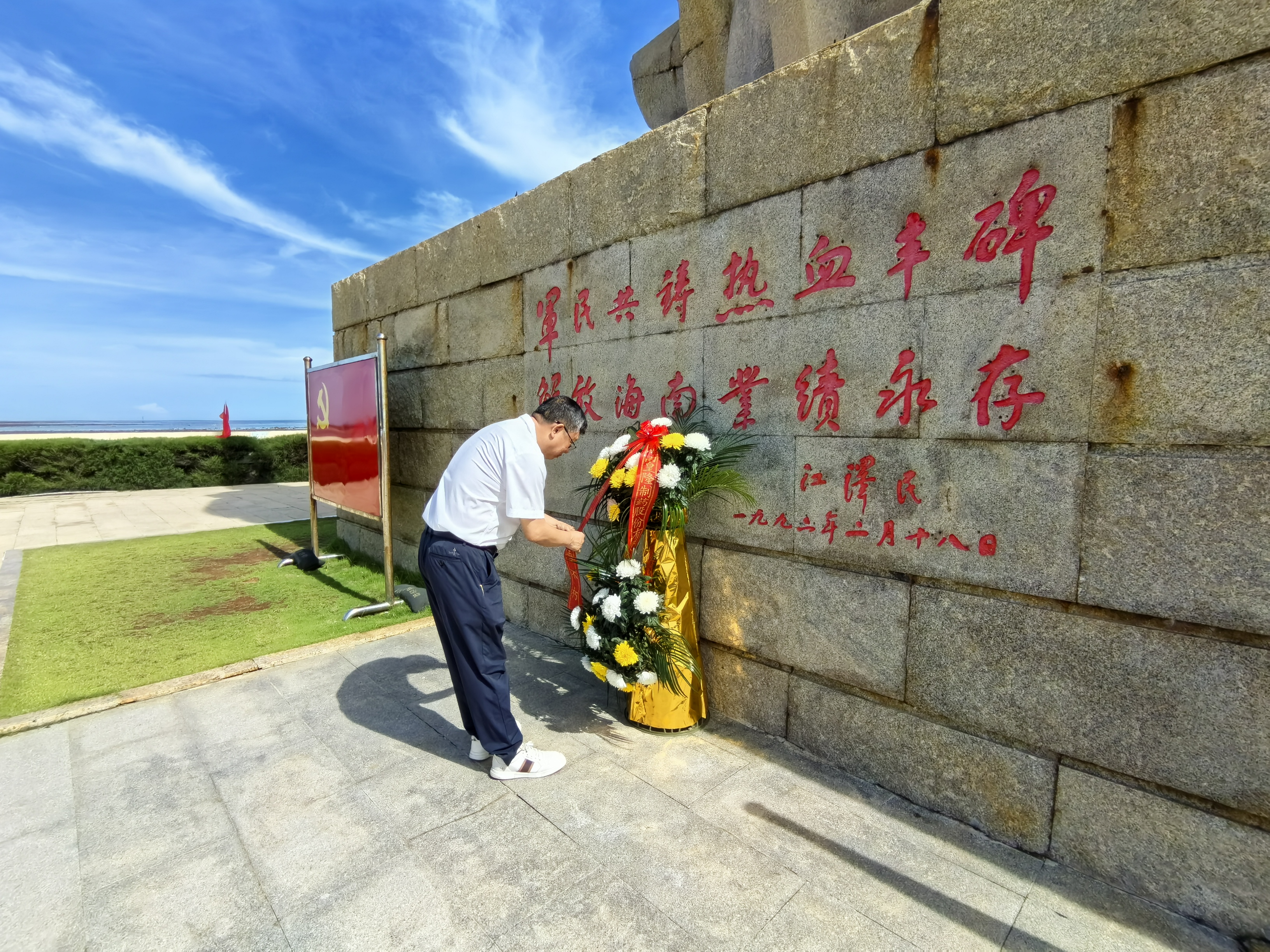 在莊嚴(yán)肅穆的“熱血豐碑”前,全體人員整齊列隊(duì),懷著無比崇敬的心情,獻(xiàn)花鞠躬,向?yàn)楹D辖夥攀聵I(yè)獻(xiàn)出寶貴生命的革命先烈致以最深切的緬懷和最崇高的敬意。