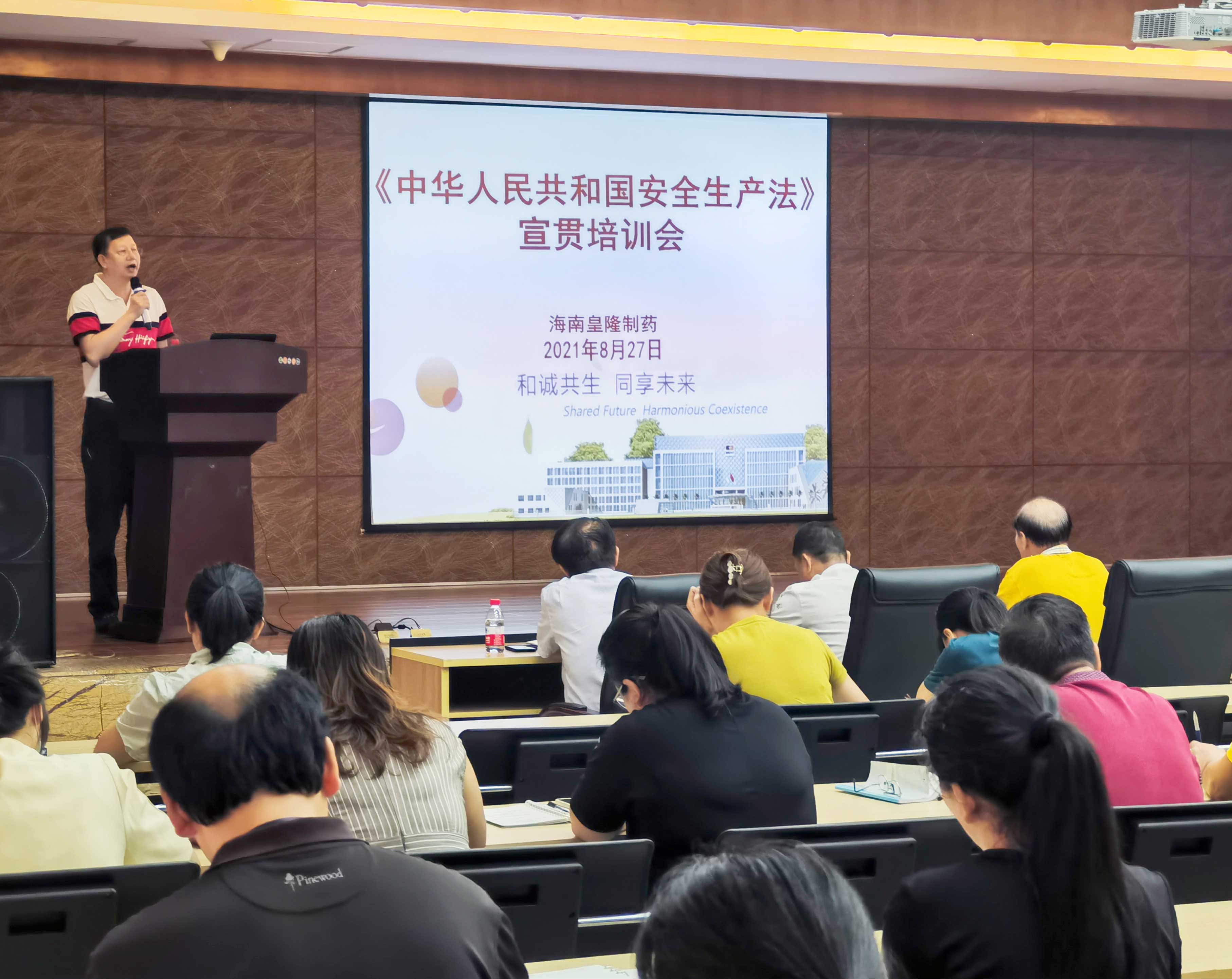 海南皇隆制藥股份有限公司高度重視此次新安全生產(chǎn)法的頒布實(shí)施,為了提高全體員工對(duì)新《安全生產(chǎn)法》的認(rèn)識(shí),全面加強(qiáng)安全生產(chǎn)法治觀念,提升企業(yè)安全管理水平,2021年8月27日組織開(kāi)展新《安全生產(chǎn)法》宣貫培訓(xùn)會(huì)議,公司安委會(huì)主任陳益智、副主任史江永、何晶及陳國(guó)華、馬和東、葉華等16名安委會(huì)成員、公司專(zhuān)職(兼職)安全員、各部門(mén)領(lǐng)導(dǎo)及骨干成員等參加了此次培訓(xùn)